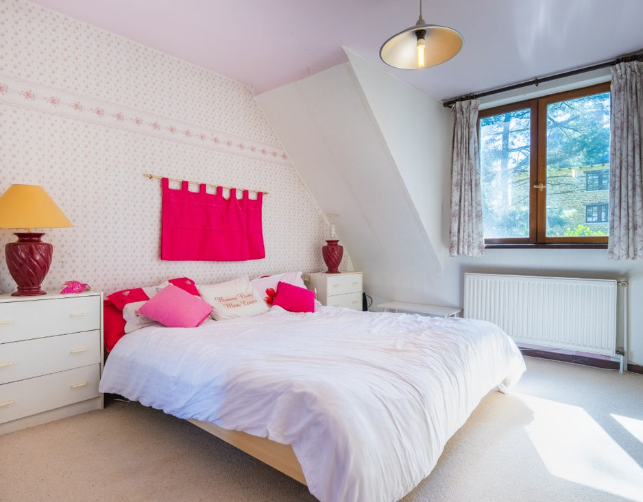 L’annexe, idéale pour une profession libérale ou un logement indépendant, comprend un vaste living, une chambre, un dressing et une salle de bains.