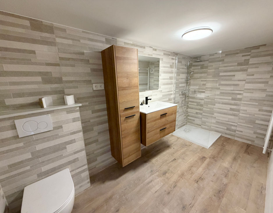 • Sous-sol (-1) : cuisine équipée avec accès à une petite terrasse, buanderie, WC et débarras